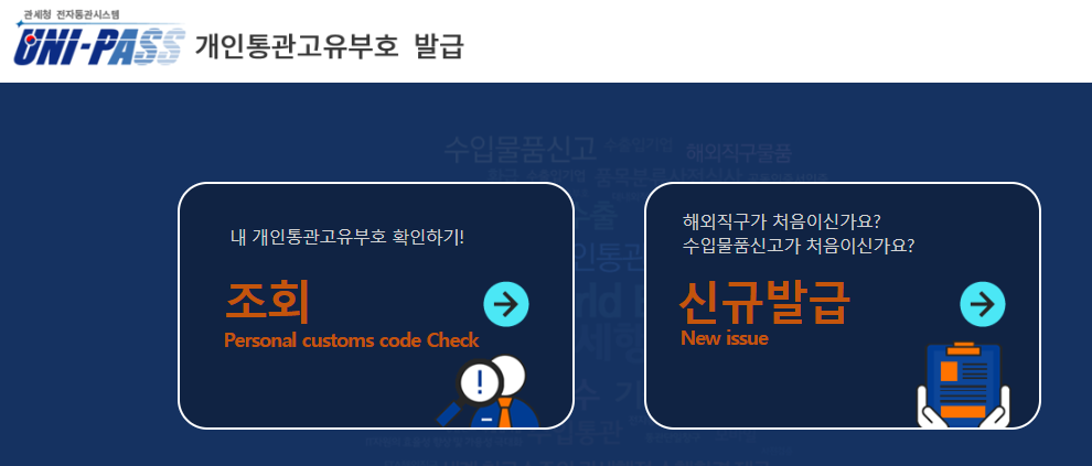1. 관세청 개인통관고유부호 발급 사이트 접속 : 아래 이미지를 클릭하면 개인통관번호 발급 페이지로 이동합니다.