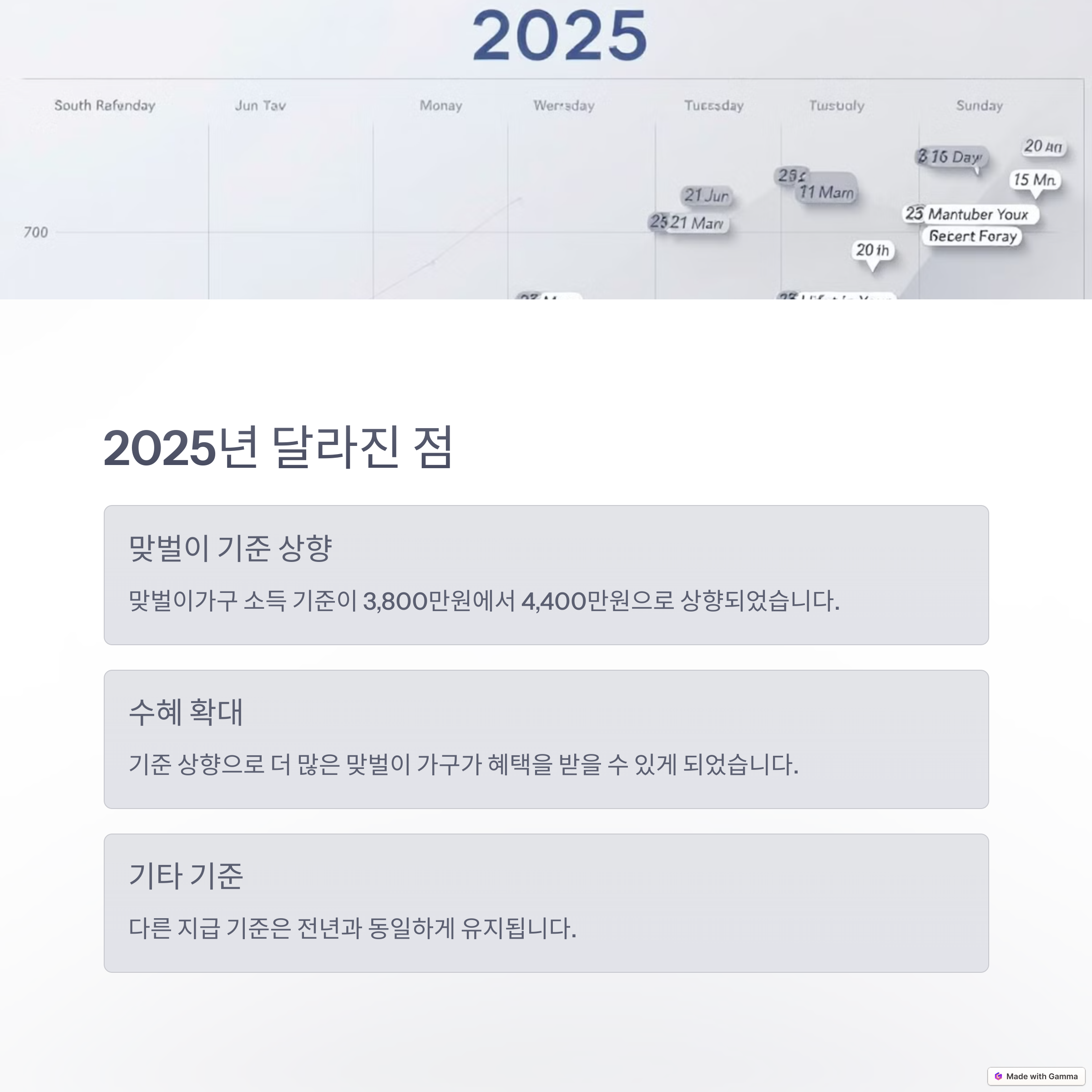 - 소득 기준 인상: 기존 대비 단독가구와 홑벌이가구의 소득 기준이 확대됨